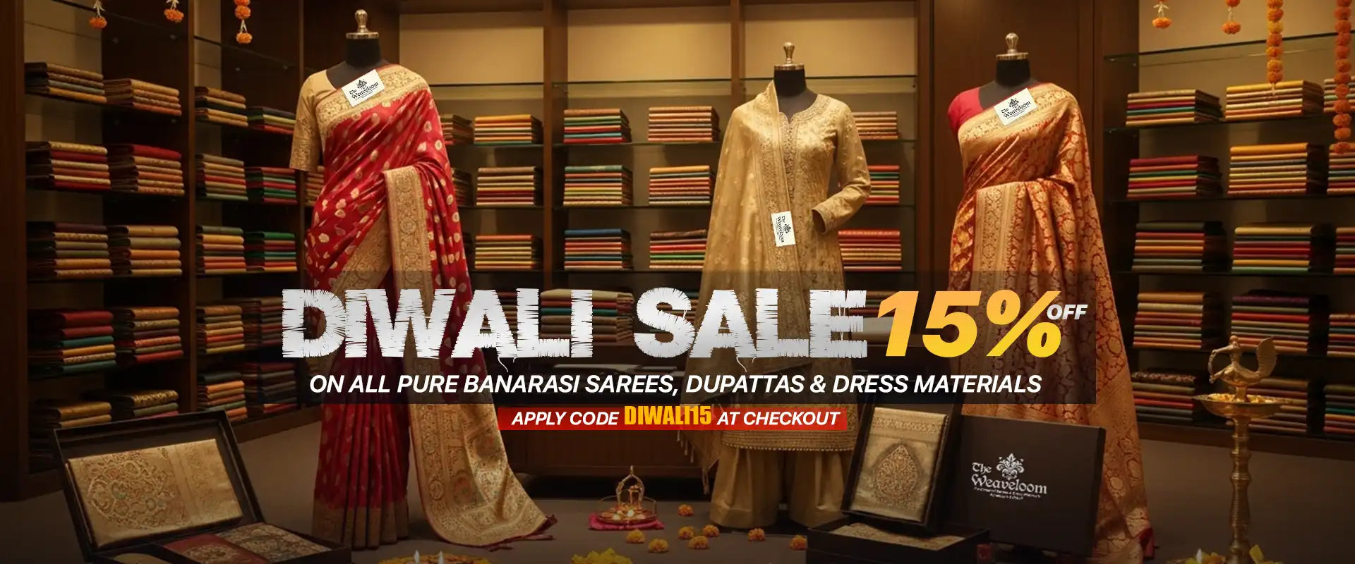 Feel the rich tradition of pure Banarasi sarees at The Weaveloom, where heritage meets elegance. From the ethereal drape of Khaddi Georgette sarees to the timeless luxury of Katan Silk Kadwa weaves, each piece is a celebration of India’s centuries-old craftsmanship. Whether you're looking for wedding sarees, custom-coloured festive picks, or daily elegance, our collections like Tussar Silk, Kora Tissue, and Organza Chikankari promise unmatched grace and purity. Shop sarees directly from Varanasi — the city where Banarasi magic is born.