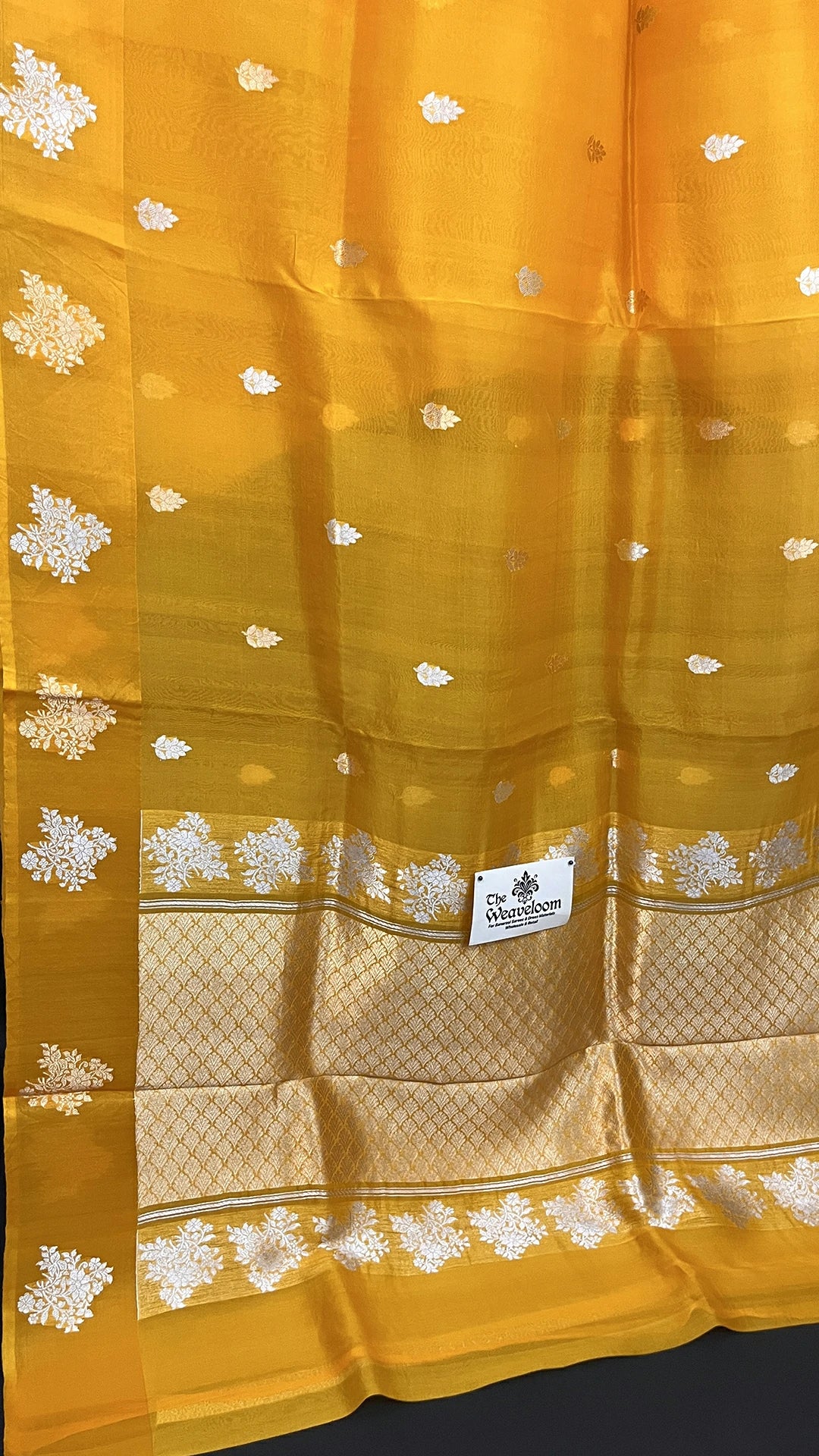 - Graceful woven motifs with refined Banarasi borders