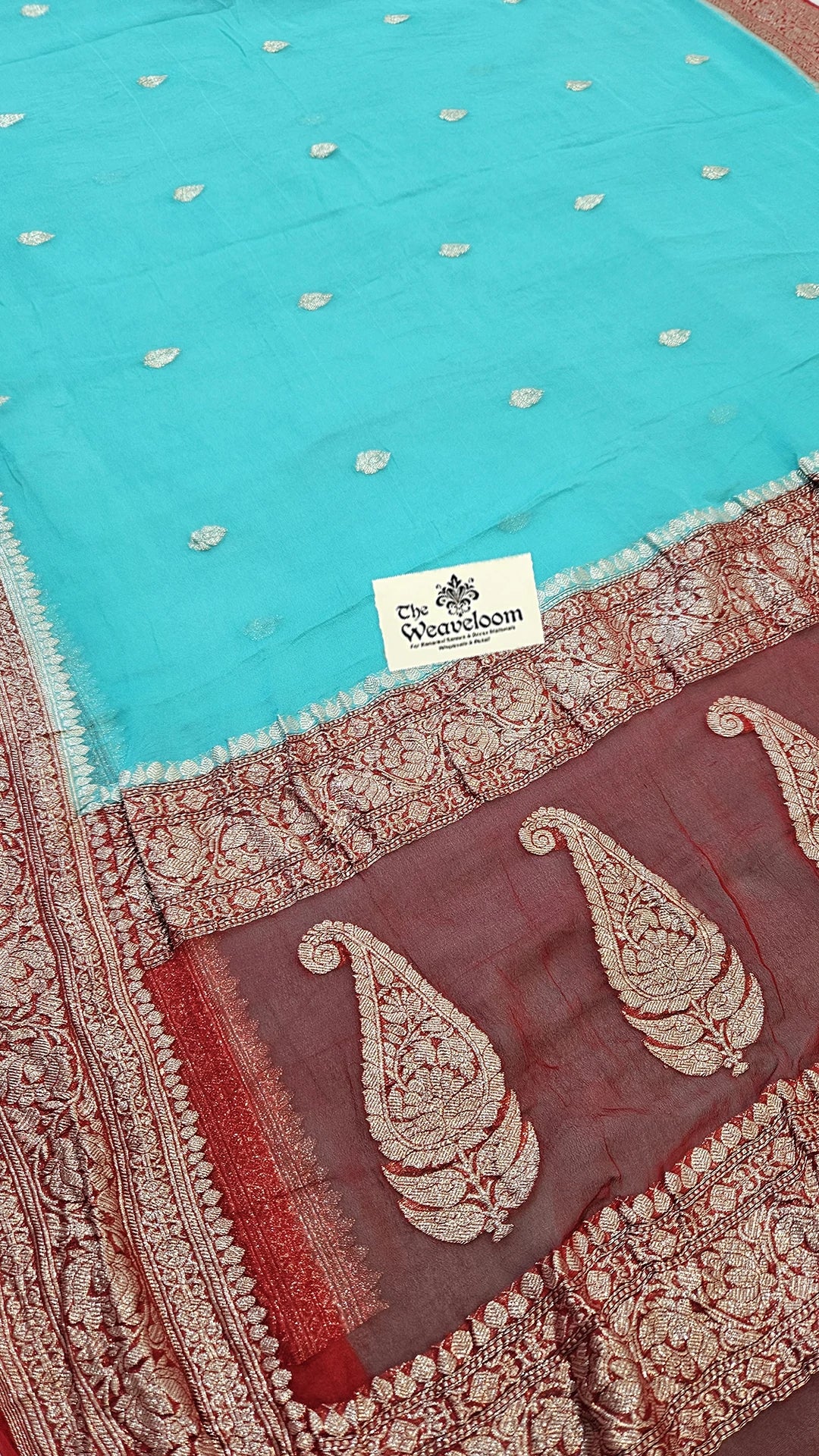 - Premium Khaddi Georgette Pure Banarasi Saree in elegant Seagreen shade
