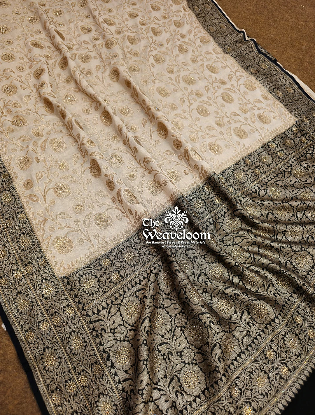 Tussar Colour - Khaddi Georgette Antique Zari Pure Banarasi Saree with Siroski Work