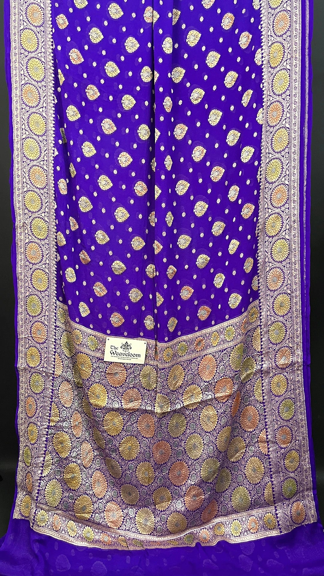 At The Weaveloom, every saree is selected with attention to fabric quality, zari detailing, colour harmony, and wearability. This Violet Crepe Georgette Pure Banarasi Saree reflects the brand’s commitment to offering premium designs that feel authentic and luxurious.