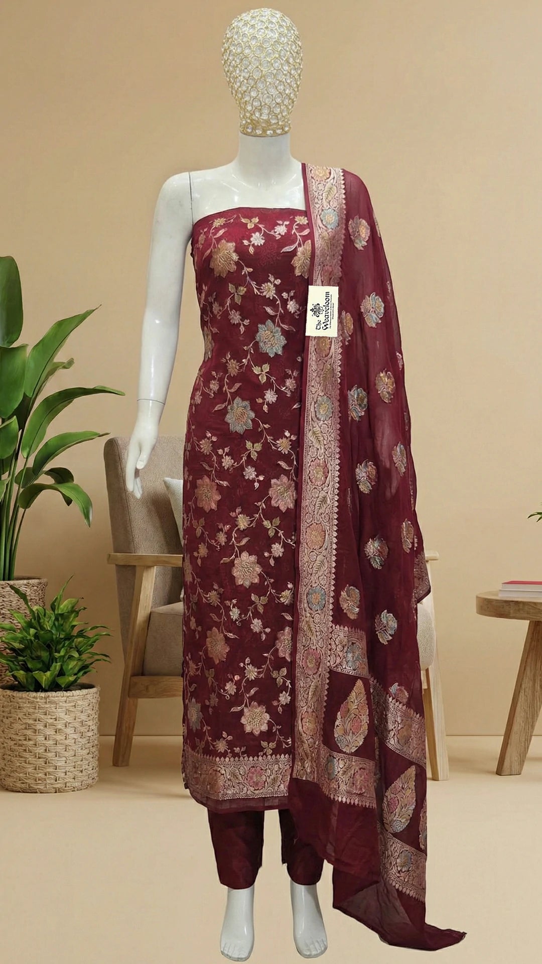 At The Weaveloom, every piece is curated with attention to detail, quality, and customer satisfaction. This Wine Pure Khaddi Georgette Banarasi Dress Material reflects our commitment to offering premium ethnic wear that feels special from the moment you receive it.